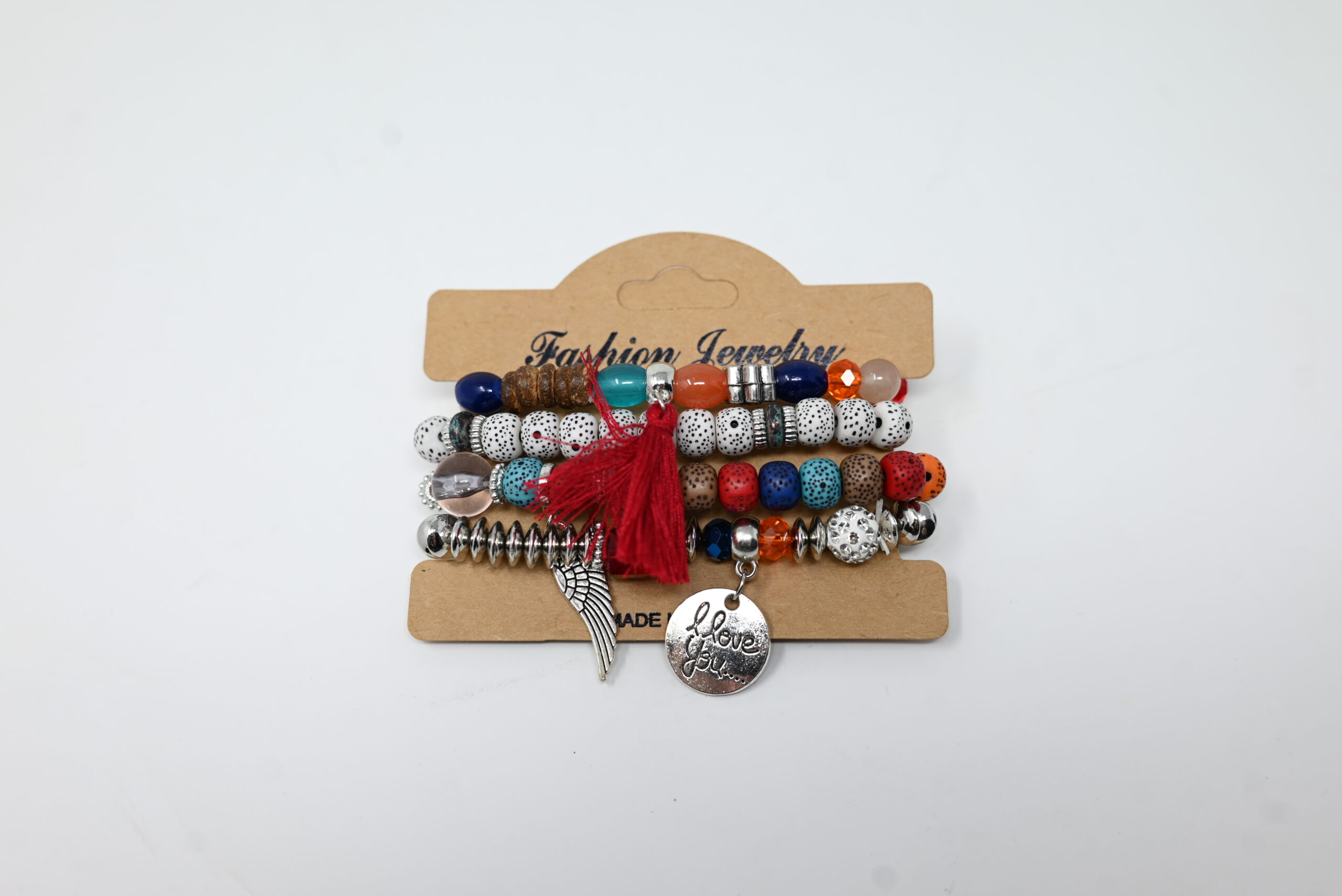 Bold and full of spirit, the Boho Fire Beaded Bracelet Set brings warmth and energy to your style. Featuring an earthy mix of red, orange, turquoise, and silver beads, this stacked bracelet set is accented with a vibrant red tassel and silver “I love you” and wing charms — perfect for expressing passion, love, and freedom.