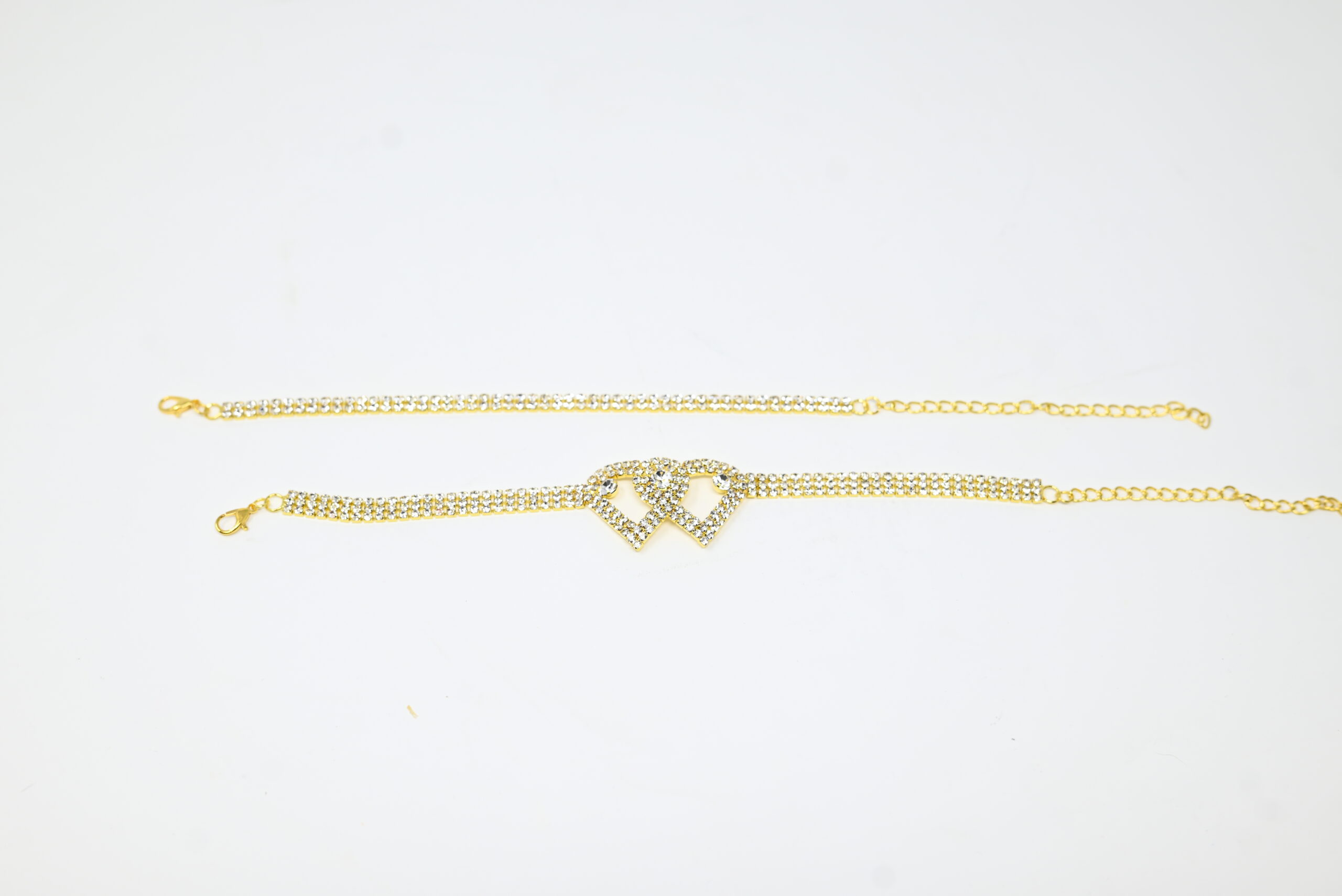 Delicate yet dazzling, this bracelet set embodies timeless elegance and romantic charm. Crafted with shimmering gold-tone chains and rhinestone embellishments, one bracelet features intertwined heart designs — a perfect symbol of love and connection. The adjustable clasp ensures a comfortable fit for any wrist, making it ideal for both everyday wear and special occasions.